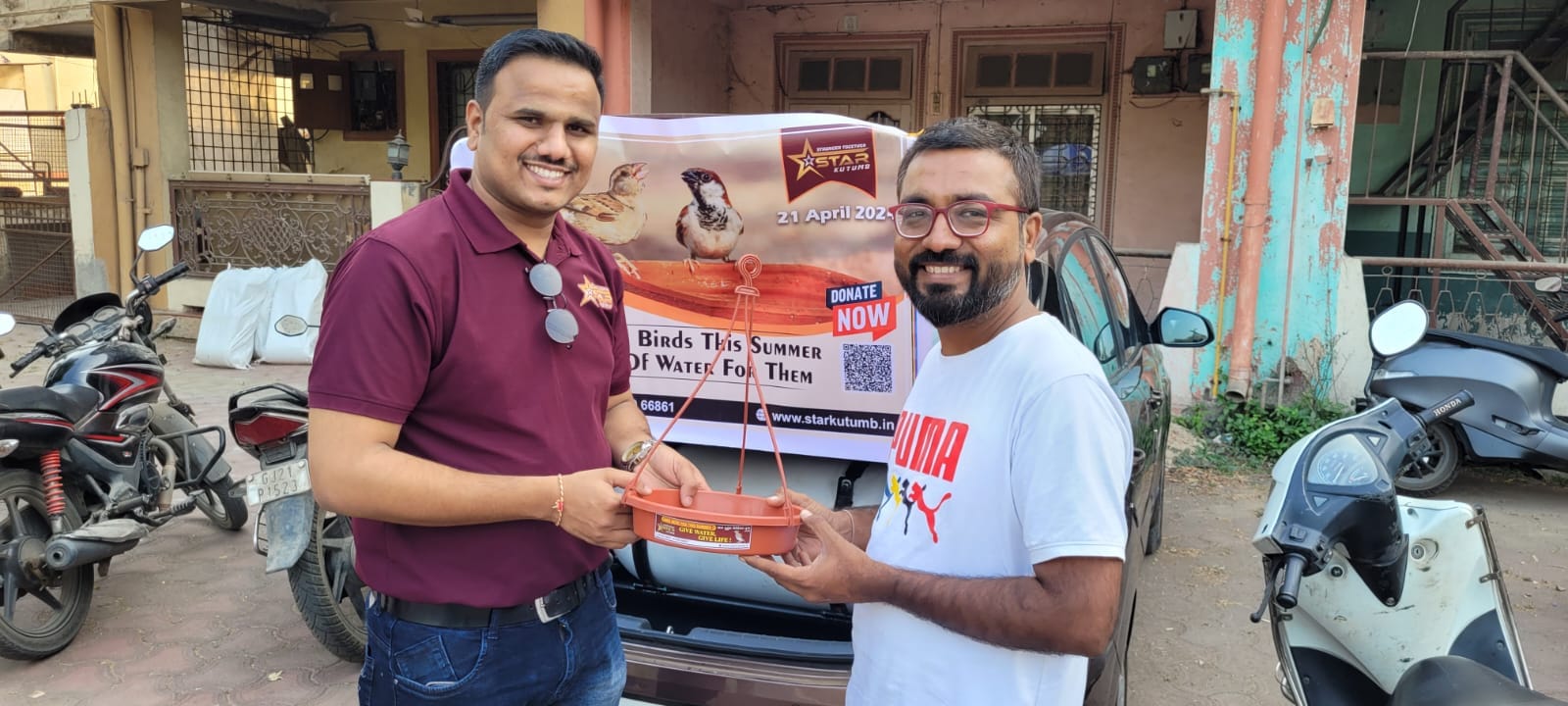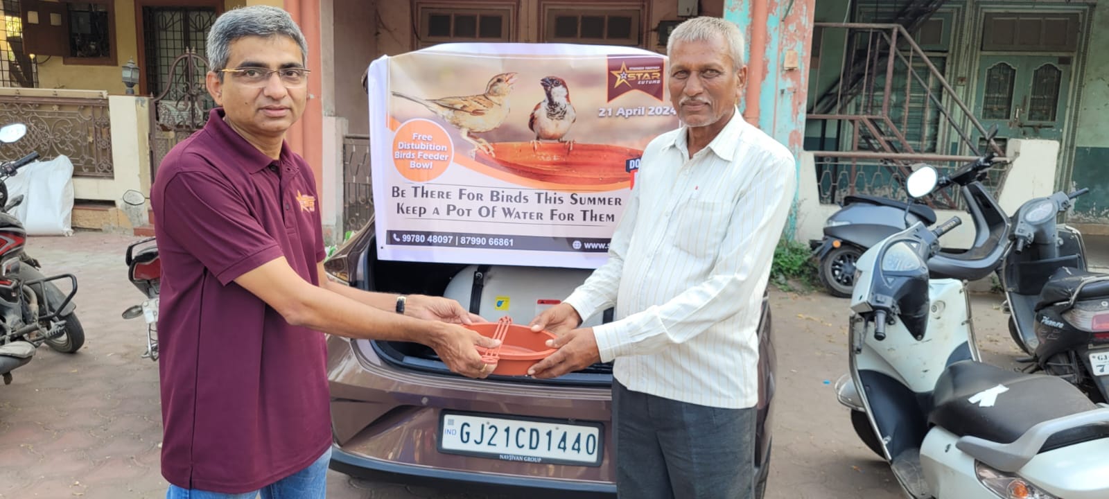Through the generous support of Star Kutumb Charitable Trust, Navsari, we were able to distribute free feeding and drinking bowls for birds across our beloved city. Your enthusiastic participation and willingness to take action embody the spirit of our message: “જળ એજ જીવન” (“Water is Life”) and “Give Water, Give Life.”